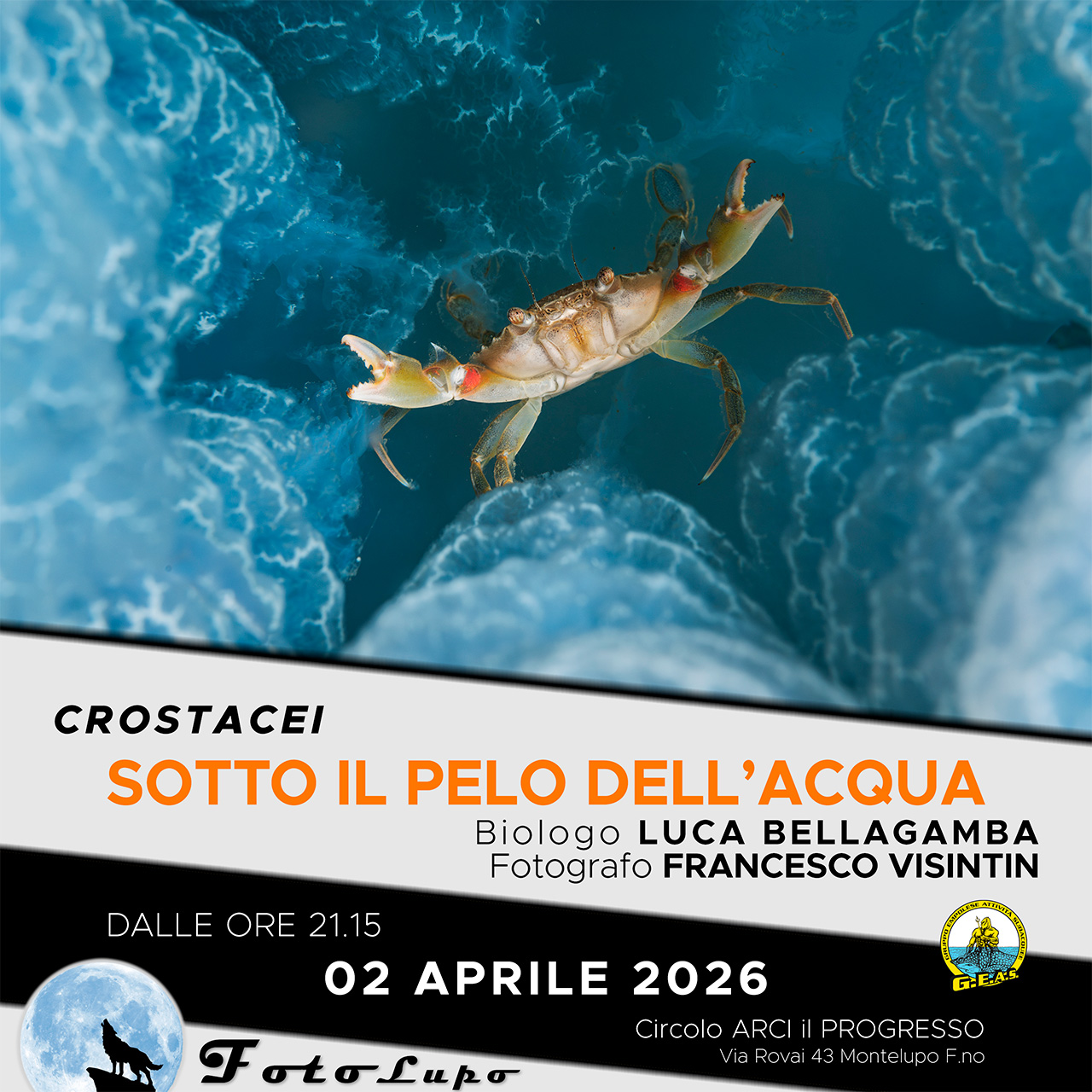 Per maggiori informazioni: https://www.fotolupo.info/02-aprile-2026-crostacei-mare-fiumi-laghi-sub-cerbai-visintin-bellagamba/