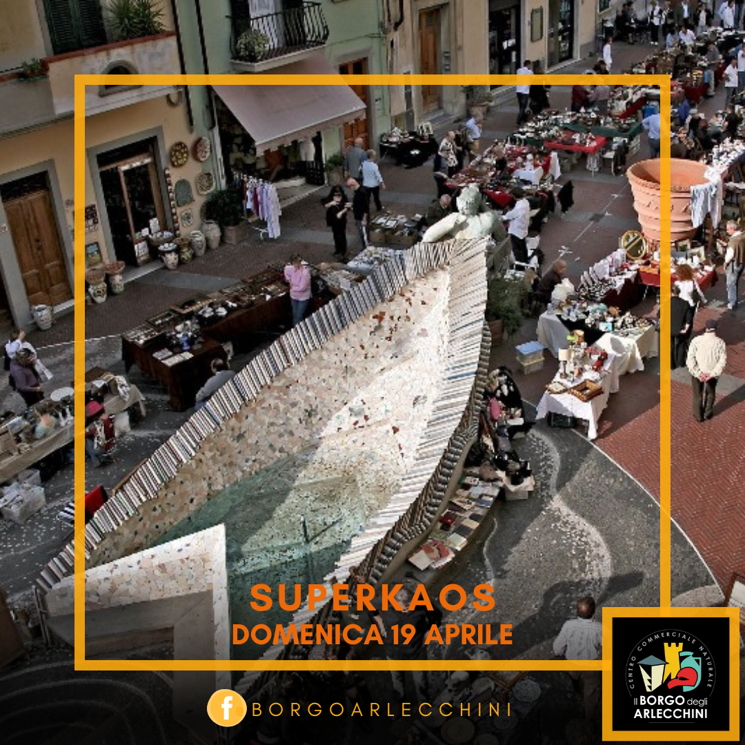 Domenica 19 aprile, dalle 9.00 alle 19.00, torna nel centro storico di Montelupo Fiorentino SuperKaos, l’appuntamento dedicato agli appassionati di curiosità, creatività e oggetti dal sapore unico, organizzato dal Centro Commerciale Naturale "Borgo degli Arlecchini".